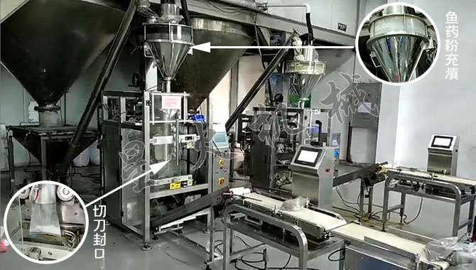 魚藥粉包裝機(jī)生產(chǎn)現(xiàn)場(chǎng)-設(shè)備細(xì)節(jié)展示: