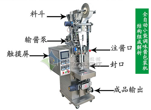 全自動小袋調(diào)味醬包裝機-辣醬油包裝機結(jié)構(gòu)組成: