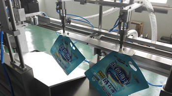 星火機械專業(yè)生產(chǎn)自立吸嘴袋灌裝機,整機采用氣電相結(jié)合,能夠?qū)崿F(xiàn)自動送袋、兩次灌裝,旋蓋、退袋等一系列工序,達到節(jié)能高效的目的;可根據(jù)客戶需求要增減部分功能;該機與物料接觸部分均采用304不銹鋼材料制作,產(chǎn)品衛(wèi)生,機器造型美觀,外觀光亮整潔;該機的自動旋蓋裝置采用磁力+齒輪旋蓋、壓力可調(diào),袋蓋緊實不遺漏、具有自動打滑功能使旋蓋松緊適當(dāng);該機帶有光電眼監(jiān)測袋蓋裝置,無袋不灌裝,無蓋可及時報警提醒操作人員檢查,及時調(diào)整,避免浪費。