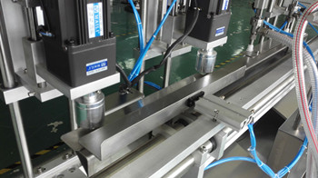 ◇ 送袋、強注充填、自動套蓋、電磁頭+齒輪旋蓋、成品排出。