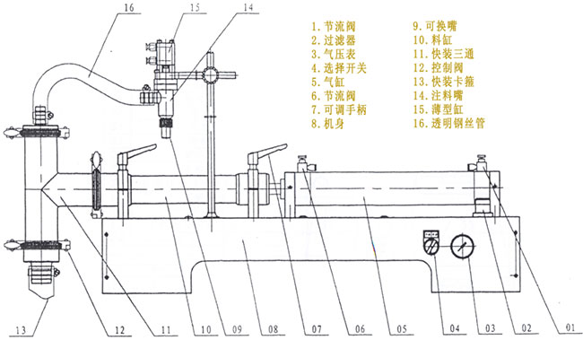DY單頭液體灌裝機(jī)結(jié)構(gòu)組成示意圖: