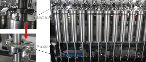 2、單排布置設計的活塞缸及其上、下快裝連接固定方式,可很方便地將整個活塞缸單元拆下清洗或更換活塞密封件,避免了活塞直接拉出缸體更換活塞密封件時物料的泄漏,造成對設備的污染。目前只有這種結構,才能真正的起到防止更換活塞密封件時物料的泄漏,提高了設備的安全性和對操作工的保護。