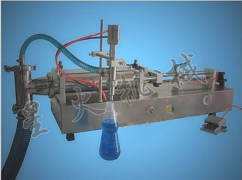 全氣動(dòng)液體灌裝機(jī)工作原理:全氣動(dòng)液體灌裝機(jī)使用雙氣壓控制,活塞缸內(nèi)的負(fù)壓和推力是通過(guò)氣缸往復(fù)直線運(yùn)動(dòng)來(lái)推動(dòng)活塞進(jìn)而完成物料的吸入和推出。